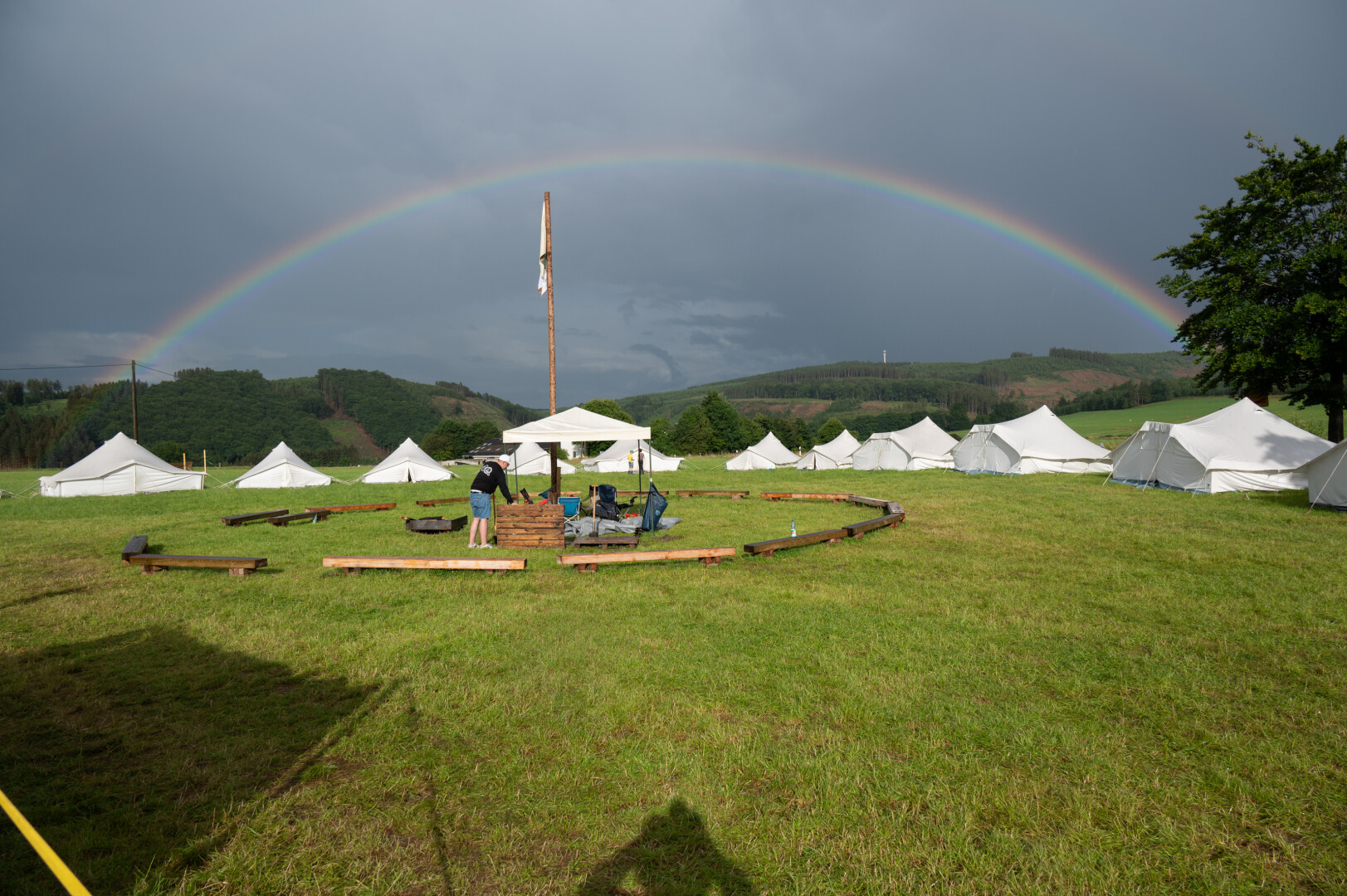Dafür trafen sich am 05.07.2024 alle aus dem diesjährigen Leiterteam und einige Ehemalige bereits um 6:30 Uhr an der Bonifatiuskirche, um das Material in den LKW zu laden. Anschließend wurde im Sternendorf Meinkenbracht alles für die Ankunft der Kinder am Samstag, den 06.07.2024 vorbereitet. Wir starteten in das Zeltlager mit einem Jubiläumswochenende: Etwa 30 Ehemalige aus den letzten Jahrzehnten Zeltlager besuchten uns und spielten zusammen mit den Kindern das Jubiläumsspiel. Abschließend für das Jubiläumswochenende haben wir noch einen schönen Gottesdienst über die Säulen des Ferienlagers gefeiert, ohne die es nicht stattfinden könnte. Dazu gehören die Kinder, das Küchen-Team, die Gruppenleiter(innen) und die Lagerleitung.