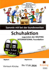 Es ist wieder soweit: Die Kolpingsfamilie Paderborn-West startet ab sofort unsere diesjährige Schuhsammelaktion „Mein Schuh tut gut“ zugunsten des Aufbaus des Stiftungskapitals der KOLPING INTERNATIONAL Foundation. Seit dem Beginn der Aktion im Jahr 2015 wurden insgesamt über 1,8 Millionen Paar Schuhe gesammelt.