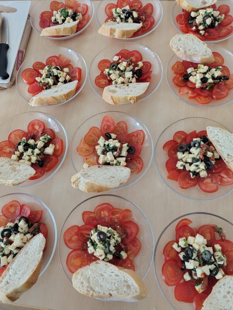 Die Rezepte waren so unkompliziert, dass wir nach weniger als zwei Stunden schon gemeinsam genießen und probieren konnten. Viel Lob gab es für die Zubereitung in den kleinen Kochteams und natürlich für die sorgfältige Vorbereitung. Das großartige Zusammenstellen und Ausprobieren der Rezepte verdanken wir Anne Vonde, die es wieder geschafft hat, eine Gelinggarantie mit in die Rezepte einzubauen. Mit hilfreichen Tipps und ihrem beherzten Eingreifen hat sie uns durch die Zubereitung begleitet – einfach wunderbar. Wir freuen uns bereits auf den nächsten gemeinsamen Kochabend.